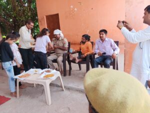 बाँदा – नरैनी के जवाहर नगर कृष्णा नगर एवं किदवई नगर के बच्चों ने क्षेत्राधिकारी नरैनी एवं कोतवाल नरैनी से रक्षा सूत्र बाँधने का आग्रह किया था। जिस पर बच्चों के आग्रह पर कोतवाल प्रभारी नरैनी सुरेश सैनी रामलीला मैदान पहुंच कर सभी बच्चों से अपनी कलाई पर राखियां बधवाई। और कोतवाली प्रभारी सुरेश सैनी ने बच्चों को रक्षा बंधन के बारे में भी जा नकारी दी और एक जिम्मेदारी नागरिक बनने की सलाह दी उन्हें मोबाइल से दूर रहने की हिदायत भी दी । और जीवन के नैतिक मूल्यों के बारे मे बहुत सी चर्चा करते हुए उन्हें उनकी रक्षा का वचन भी दिया। बच्चों ने समाज सेवी उमेश तिवारी एवं सोनू करवरिया की मदद से पूरा आयोजन किया ।और छोटे छोटे बच्चों के हाथों से आए सभी कोतवाल प्रभारी और आरक्षीयों को राखी बाँधी। इस आयोजन मे उपस्थित नरैनी के पूर्व अध्यापक फालगो प्रसाद द्विवेदी, विजय दीक्षित जी ने गीत के माध्यम से भाई बहन के अटूट प्यार को समझाया और ज्ञानेंद्र पाण्डेय ने बच्चों को आगे बढ़ते हुए समाज पर और देश में अपना नाम रोशन करने की सलाह दी। इस कार्यक्रम में शामिल सभी छोटे छोटे बच्चों को दिनेश मिश्रा द्वारा मुद्रा देकर बच्चों का हौसला बढ़ाया तथा कोतवाली प्रभारी सुरेश सैनी ने सभी बच्चों का मुंह मीठा कराया और सभी बच्चों को गिफ्ट भी दिया। जिस पर बच्चों द्वारा कोतवाली प्रभारी सुरेश सैनी को धन्यवाद देते हुए शुभकामनाएं दी। इस राखी बंधन के कार्यक्रम में । फलगो प्रसाद द्विवेदी, विजय कुमार दीक्षित, ज्ञानेंद्र पाण्डेय, रामकेश तिवारी, राजाभैया मिश्रा संतराम गुप्ता,राजकुमार द्विवेदी, जीतू यादव,भोलू मिश्रा, अखिलेश गुप्ता आदि लोग उपस्थित रहे।
