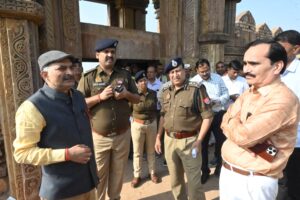 आयुक्त चित्रकूटधाम मण्डल बाॅदा श्री बाल कृष्ण त्रिपाठी, पुलिस उप महानिरीक्षक श्री अजय कुमार सिंह, जिलाधिकारी बाॅदा श्री नगेन्द्र प्रताप तथा पुलिस अधीक्षक श्री अंकुर अग्रवाल ने संयुक्त रूप से कालिंजर में आयोजित होने वाले ऐतिहासिक कार्तिक मेला की तैयारियों के सम्बन्ध में मेला स्थल एवं कालिंजर किले का निरीक्षण किया। निरीक्षण के दौरान उन्होंने आने वाले श्रृद्धालुओं के लिए समुचित पेयजल व्यवस्था, मेला स्थल की साफ-सफाई तथा समुचित प्रकाश की व्यवस्था के कार्यों का जायजा लेते हुए सभी आवश्यक व्यवस्थायें सुनिश्चित करने के निर्देश सम्बन्धित अधिकारियों को दिये। उन्होंने मेला स्थल पर लगने वाली दुकानों को रोड से किनारे रखने तथा विद्युत आपूर्ति हेतु समुचित व्यवस्था कराये जाने के निर्देश विद्युत विभाग के अधिकारियों को दिये। उन्होंने मेला स्थल पर खोया-पाया केन्द्र बनाये जाने तथा राजस्व एवं पुलिस कर्मियों की आवश्यकतानुसार सुरक्षा एवं अन्य व्यवस्थाओं को सुनिश्चित करने हेतु ड्यूटी लगाये जाने के निर्देश दिये।