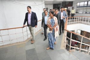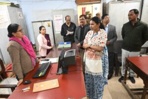 जिलाधिकारी श्रीमती जे0 रीभा ने विकास भवन में स्थित विभिन्न कार्यालयों का निरीक्षण किया