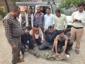 वन विभाग की टीम को मिली सफलता आखिर पकड़ा ही गया मगरमच्छ