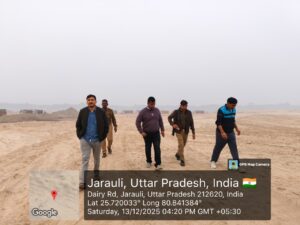 जिलाधिकारी महोदया, बाँदा द्वारा दिये गये निर्देश के क्रम में दिनांक 13.12.2025 को अपर जिलाधिकारी (वि०/रा०), बांदा व खान अधिकारी, बांदा द्वारा संयुक्त रूप से जनपद बादा की तहसील बबेरू स्थित ग्राम-मर्काखादर के खण्ड सं0-04 में बालू/मोरम के स्वीकृत खनन पट्टा क्षेत्र की औचक जाच / निरीक्षण किया गया। प्रश्नगत खनन क्षेत्र गे हुये खनन की जाच निर्धारित जियोकॉर्डिनेट्स के अनुसार तैयार की गयी KML फाईल, गाटा सख्या व क्षेत्रफल के माध्यम से मिलान करने के उपरान्त की गयी, जिसमें यह पाया गया कि पट्टाधारक द्वारा अपने स्वीकृत क्षेत्र के अन्दर खनन / परिवहन कार्य करता हुआ पाया गया तथा उक्त खनन पट्टा क्षेत्र में सीमा स्तम्भ/पिलर भी अपने निर्धारित स्थान पर लगे हुये पाये गये। साथ ही ग्राम-मर्काखादर के खण्ड सं0-03 में बालू/मोरम के स्वीकृत खनन क्षेत्र, जिसमें ई०सी० प्राप्त होने की प्रक्रिया में है, की Replenishment study में उल्लिखित मात्रा की जांच ड्रोन कैमरा व जी०पी०एस० के माध्यम से की गयी।