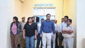इनडोर वॉलीबॉल हाल रिनोवेशन एवं निर्माणाधीन कबड्डी हाल तथा जिम हाल एवं बैडमिंटन कोर्ट आदि का निरीक्षण किया l उन्होंने निरीक्षण करते हुए जिम हाल में लाइट की व्यवस्था कराए जाने के निर्देश दिए